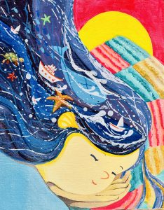 Sie ist spezialisiert auf Mixed-Media-Illustrationen und glaubt, dass jedes Material oder jede Technik der Ausdruck von Ideen dienen sollte. Ihre Themen drehen sich oft um Träume, Kindheit und surreale Welten, wobei sie sich auf soziale Probleme und die menschliche Natur konzentriert. Sie konstruiert ihre Werke mit einer kraftvollen Vorstellungskraft und präsentiert geschickte Designelemente sowie einen starken Fokus auf Narrativität und Unterhaltung innerhalb ihrer Kompositionen. Im Jahr 2024 wurden ihre Werke im Karussellsaal des Louvre-Palastes in Paris, Frankreich, ausgestellt.